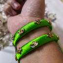 Light Green Silk Thread Bangles with Kundan Work (Set of 2)