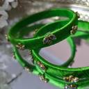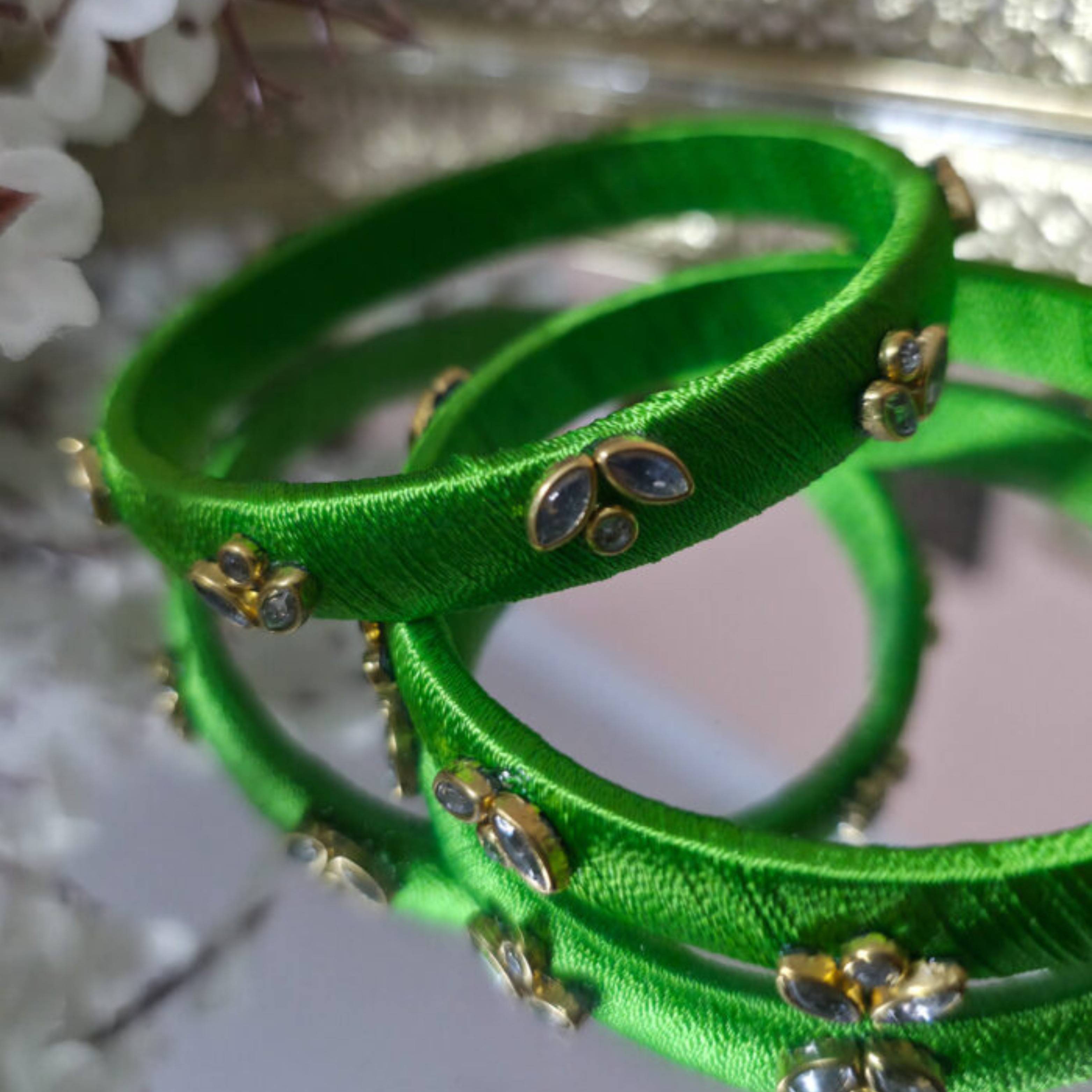 Light Green Silk Thread Bangles with Kundan Work (Set of 2)