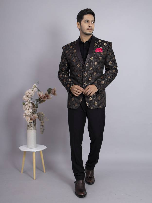 Men Self Design Single Breasted Party, Festive & Wedding Blazer (Black)