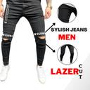 The knee cut design adds an edgy and trendy touch to the classic black jeans, making them perfect for any occasion, whether it's a casual day out or a night on the town. The precise placement of the knee cuts creates a slimming effect, drawing the eye to the lower leg and adding length to your overall silhouette.