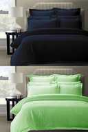 n g products Cotton Double Flat 300 TC Striped Bedsheet (Pack of 2, Blue & Parrot)