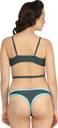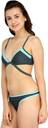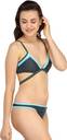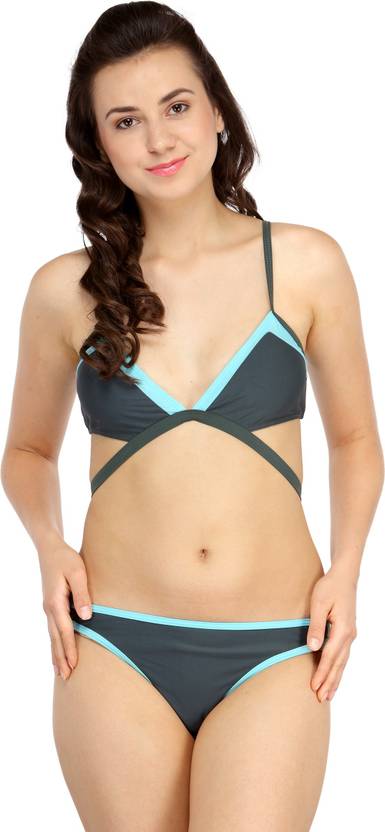 This women in bikini swimsuit features a contrast color match of olive green and light blue. The wrap top with adjustable spaghetti straps. Heat up the beach with your exotic, sexy look this summer.