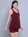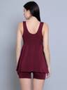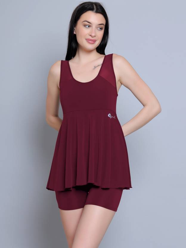 N-Gal Frock Style With Inner Short Padded One Piece Swimming Costume_Wine