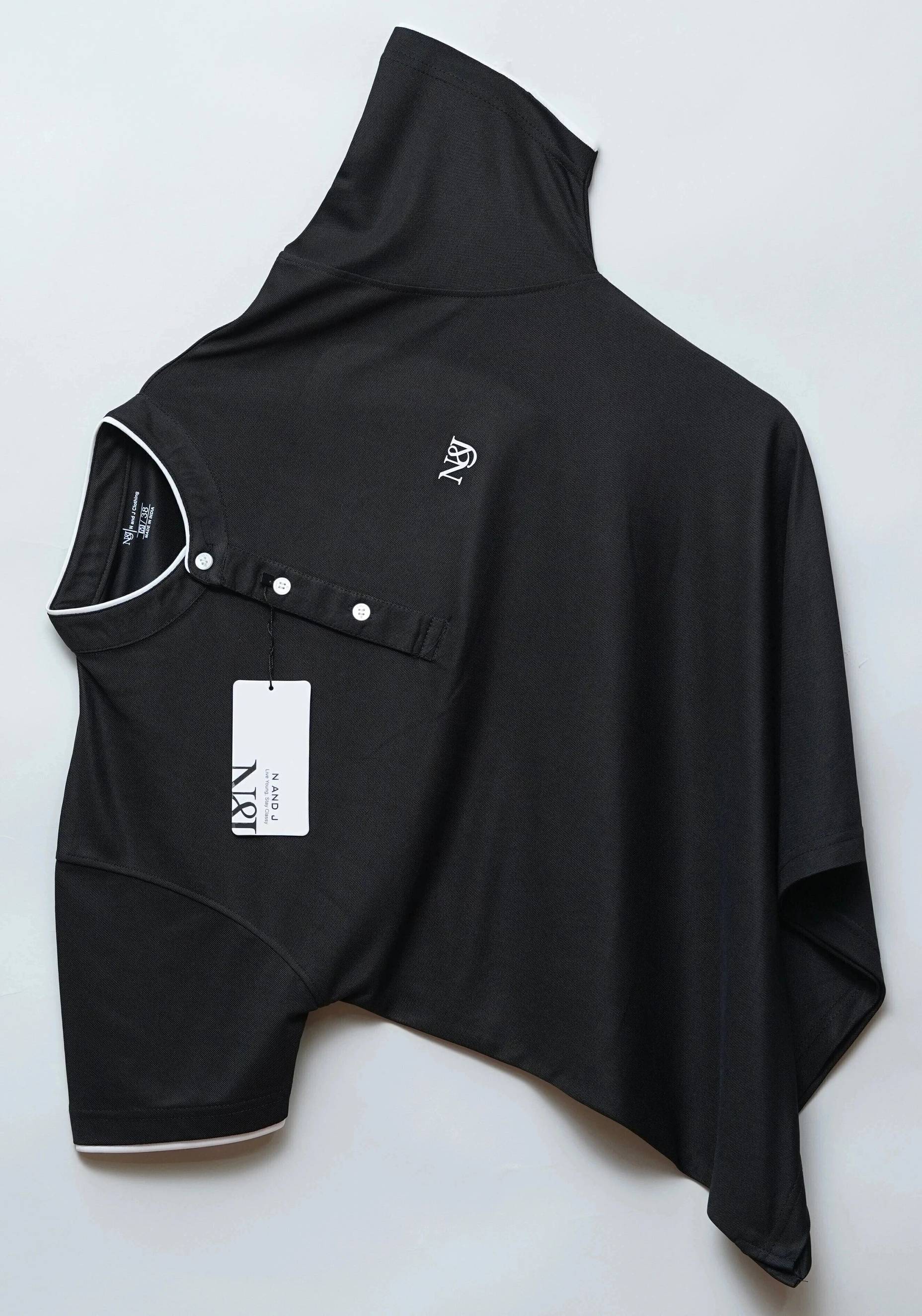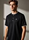 N AND J Solid Men Henley Neck Black T-Shirt