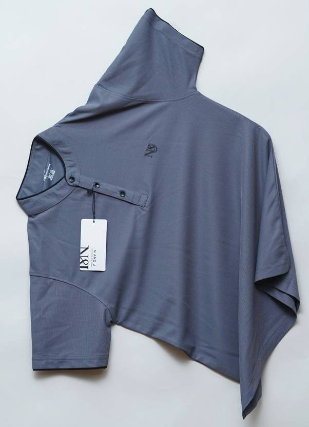 N AND J Solid Men Henley Neck Grey T-Shirt