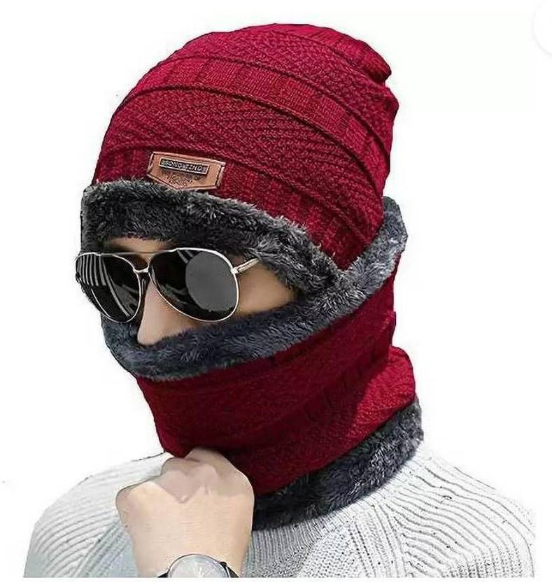 Winter woolen beanie cap with high neck woolen warmer. It keeps you warm and cozy during the snow days and winter days. It gives simple and classic look to men and women, both can use to wear it. Easy to wash with hand and in machine. Don't use dryer to dry the cap hang it simply after the wash.