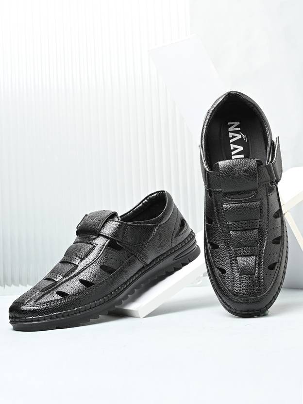 Naal Black Roman Sandals For Men