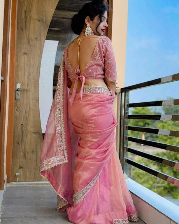 Vinayak Textile Embroidered Bollywood Tissue, Silk Blend Saree (Pack of 2, Pink)