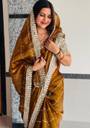 Embroidered, Embellished Bollywood Silk Blend Saree (Gold)