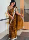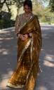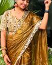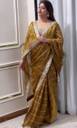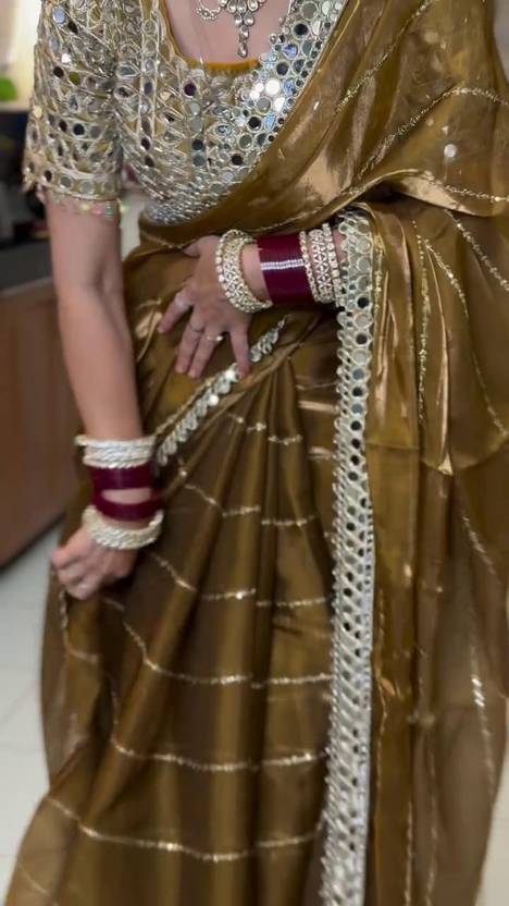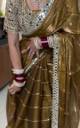 Shiny Gold FA18 gold mustard silk chiffon tissue mirror moti work blouse sequence saree
