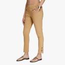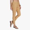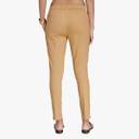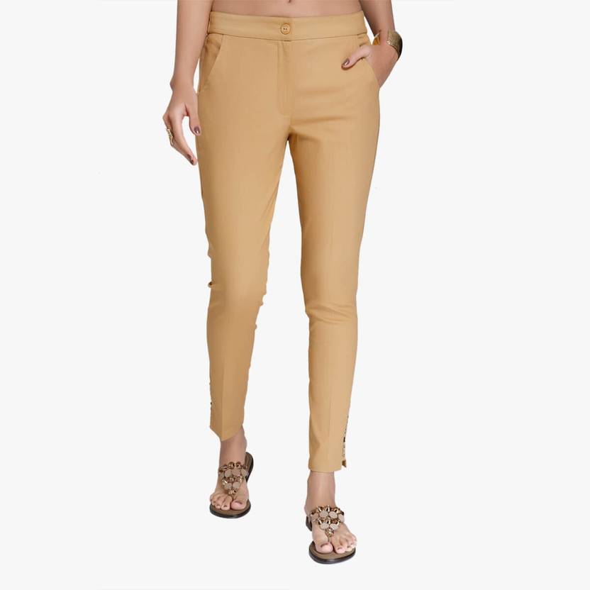 Women Slim Fit Beige Cotton Blend Trousers