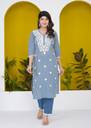 It is latest design printed and embroidered kurti pant set . It is made by cotton fabrics. It is looking very beautiful dress