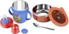 Nabhya 380ml Stainless Steel Air Tight Baby Feeding Bowl With 250ml Sipper Cup for Kids - Stainless Steel (Blue)