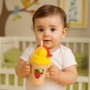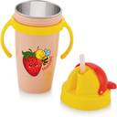 Nabhya Inner Steel Cartoon Print Water Bottle With Straw 360 ML Sipper Bottle for Kids (Pink)