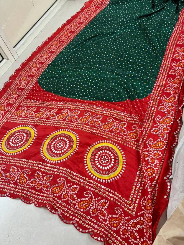 Printed Bandhani Art Silk Saree (Green)