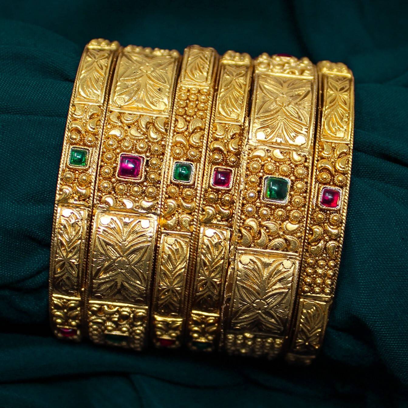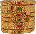 Nagneshi Art Traditional Paisley Gold Plated Multicolor Ruby Ethnic Bangle Set for Women (Set of 6)
