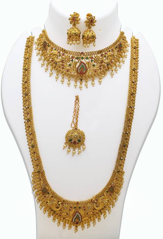 The Alloy Gold-plated Multicolor Jewel Set is a vibrant and eye-catching accessory designed to bring a splash of color and elegance to any outfit. This set, crafted with a gold-plated alloy base, features a stunning array of multicolor stones or embellishments, creating a dynamic and luxurious appearance. Ideal for festive occasions, parties, or special events, this jewel set offers a perfect blend of traditional charm and contemporary style.