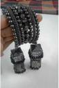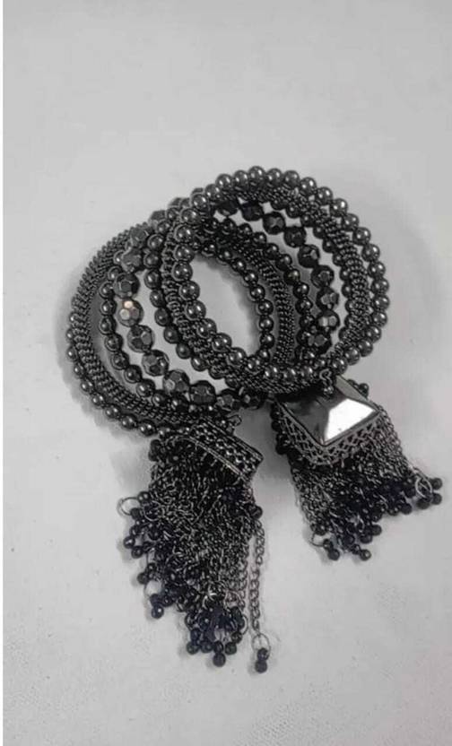 Add a bold statement to your style with this stunning black beaded oxidized bracelet. Designed with multiple strands of glossy black beads and intricate metal detailing, this bracelet exudes elegance and sophistication. The hanging tassel chains enhance its charm, making it a perfect accessory for both ethnic and western outfits. Ideal for parties, festive occasions, and gifting.
