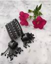 Elegant Black Beaded Oxidized Bracelet with Tassel Chains