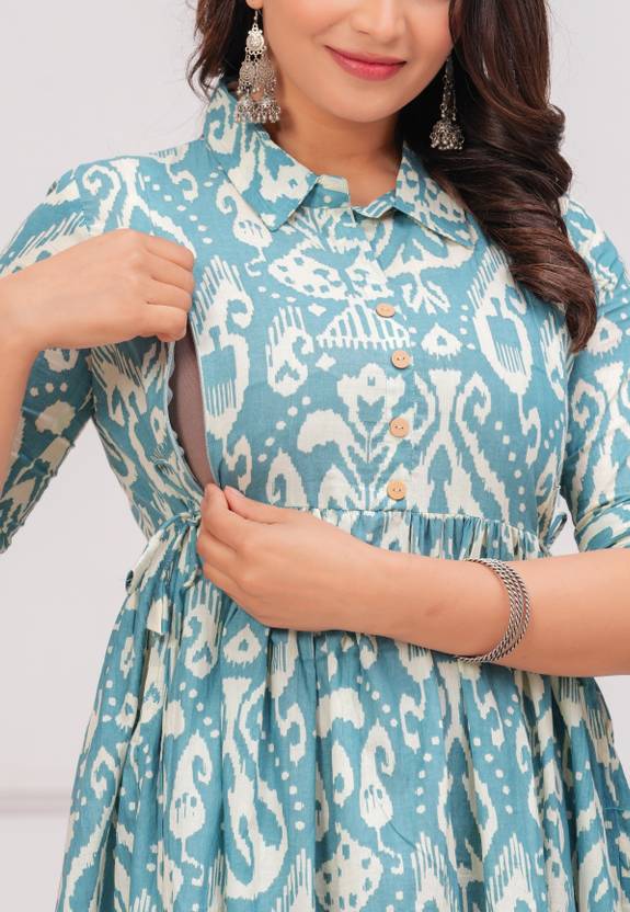 Women Printed Pure Cotton Anarkali Maternity Feeding Kurta