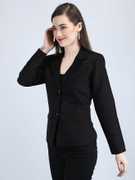 Classic Black Color: The blazer is in a classic black color, which is versatile and suitable for both formal and semi-formal occasions.