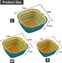[BEST COLANDER SET FOR YOUR KITCHEN] Works for draining most foods like spaghetti, pasta, potatoes, broccoli, green beans, carrots, spinach and other veggies. User these strainers to rinse your salad leafs, fruits and fresh vegetables.[Size of the colander set] Large 11*10.2*3.9 inches, Medium 9*8.2*3.7 inches, Small 7.48*7*3 inches, three different sizes are available for you to choose. [Quality & Material] The basket colander set is made of food-grade PP plastic material, BPA-free polypropylene, non-toxic manufacturing, durable and drop-proof, can be used for many years, and has multiple functions, and can be used in reverse. [Space saving] Our basket slotted spoon set uses nesting design, which can save space and is convenient to use. When using, the slotted spoon is convenient for watering, and the basket is filled with fruits and vegetables.