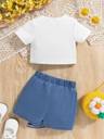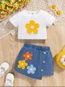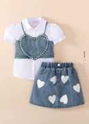 I Naina Dresses Girls Daisy Casual Top Skirt (White & Denim)