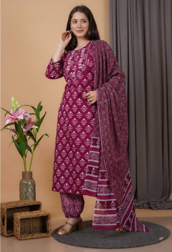 Women's Pure Cotton Embroidered Kurta Set With Dupatta
