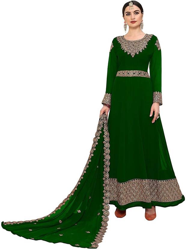 Women's Anarkali Faux Georgette Embroidery Semi-stitched Salwar Suit Dupatta