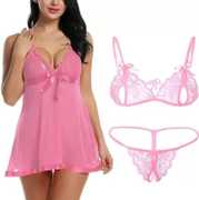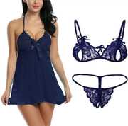 Babydoll features soft and breathable lace and mesh material, unlined lace cups with scalloped lace trims, semi V-neck and adjustable shoulder straps help adjust to the best fit and the transparent material helps create a very stunning look for you. Comes with a matching g-string panty., PERFECT FITTING for all shapes and sizes : FREE SIZE lace babydoll lingerie. Comfortably fits well for regular Small, Medium and Large sizes. Size range : Bust (30 to 36 inch) , Waist (28 to 34 inch)., OCCASION: Lace babydoll lingerie for women is a perfect choice for your romantic date nights, honeymoon lingerie, Valentine's day gift, anniversary night wear, wedding night dress or any regular bedroom night. Gift yourself or surprise your lover with this hot babydoll lingerie. This sensual babydoll nighty for women is sure to make your nights memorable. Women babydoll lingerie with floral lace and matching g-string panty. These uniquely designed Lingerie set give you the
