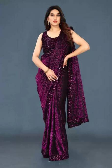 Its beautiful saree with heavy print sequin border abd comes with eye catchy sequin blouse. Add this beautiful saree to your style statement.A sari is a timeless and elegant garment, deeply rooted in Indian culture. This unstitched length of fabric, typically four to nine meters long, is gracefully draped around the body, often over a petticoat and a fitted blouse (choli). Saris come in an astonishing array of colors, patterns, and fabrics, ranging from luxurious silks like Kanchipuram and Banarasi to lightweight cottons and georgettes. Each region of India boasts unique draping styles and weaving traditions, reflecting diverse cultural aesthetics. Adorned with intricate embroidery, prints, or zari work, the sari symbolizes grace, tradition, and personal expression, making it a beloved attire for everyday wear and special occasions alike.Drape yourself in timeless elegance with our trending sari. This piece embodies the "heritage revival" trend, showcasing traditional craftsmanship with a modern, lightweight feel. The intricate weave and vibrant colors make it perfect for any festive occasion or wedding. It's the ultimate statement of grace and tradition, designed for the contemporary woman.