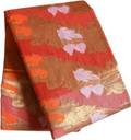 Graphic Print Garad Cotton Silk Saree (Orange, White)