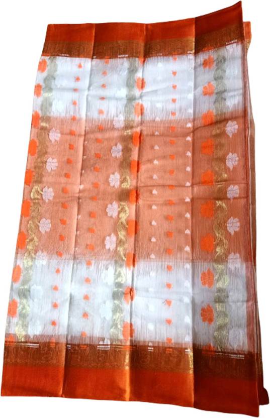 NAKSHATRA CREATION Graphic Print Garad Cotton Silk Saree (Orange, White)