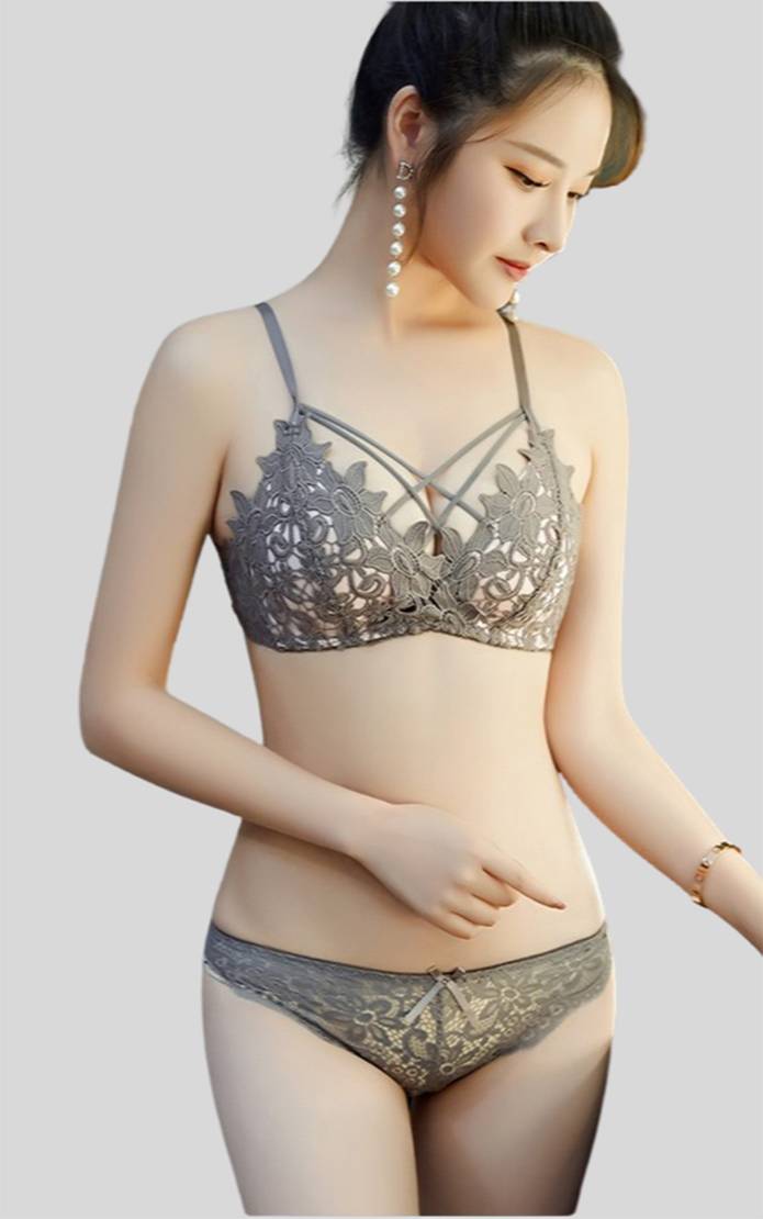 Bra & Panty Set Self Design Grey Lingerie Set