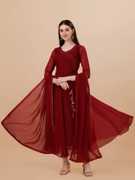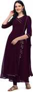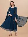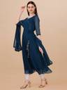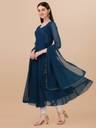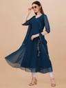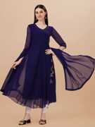 Women Solid Georgette Anarkali Kurta With Attached Dupatta (Dark Blue)