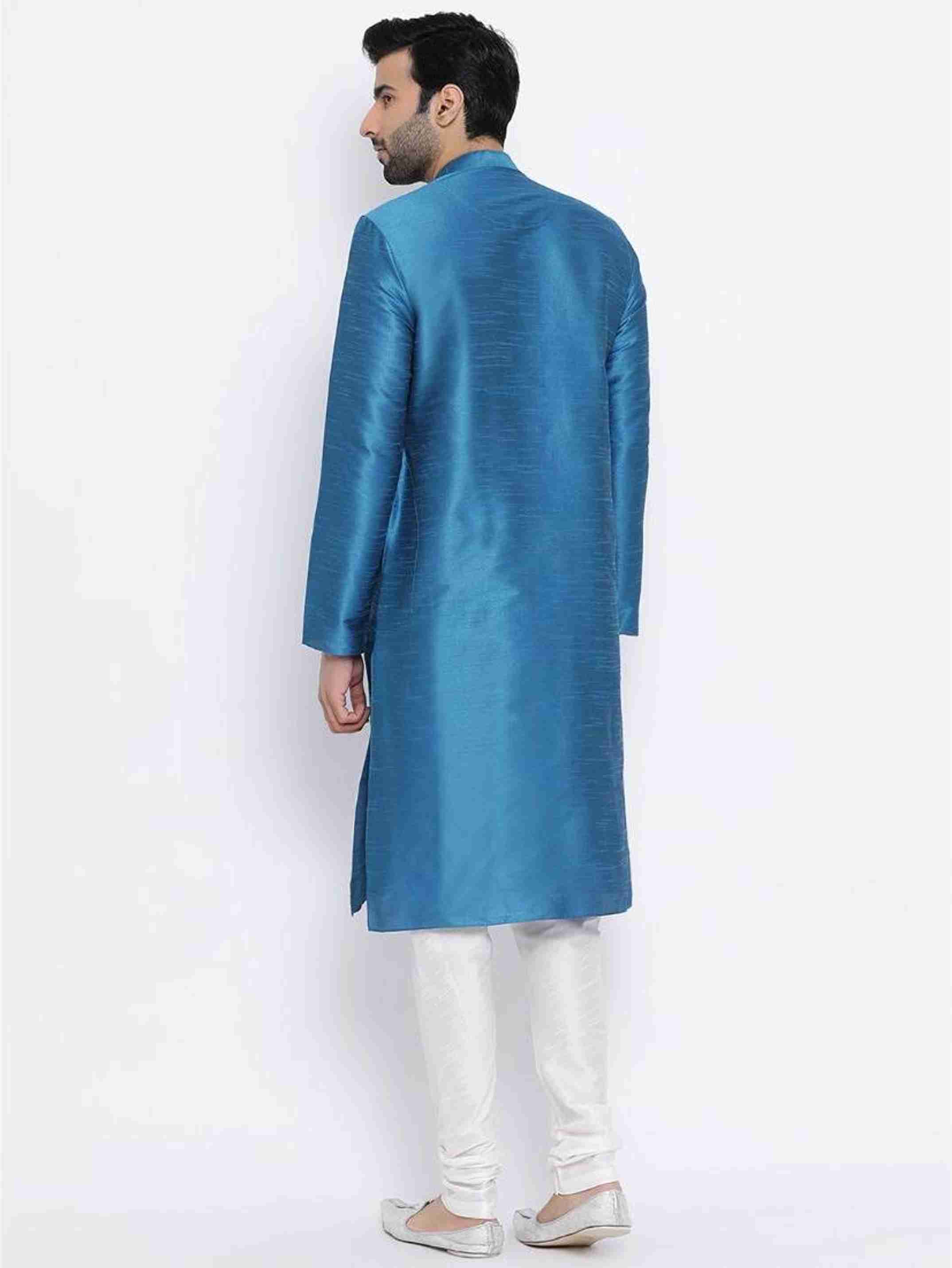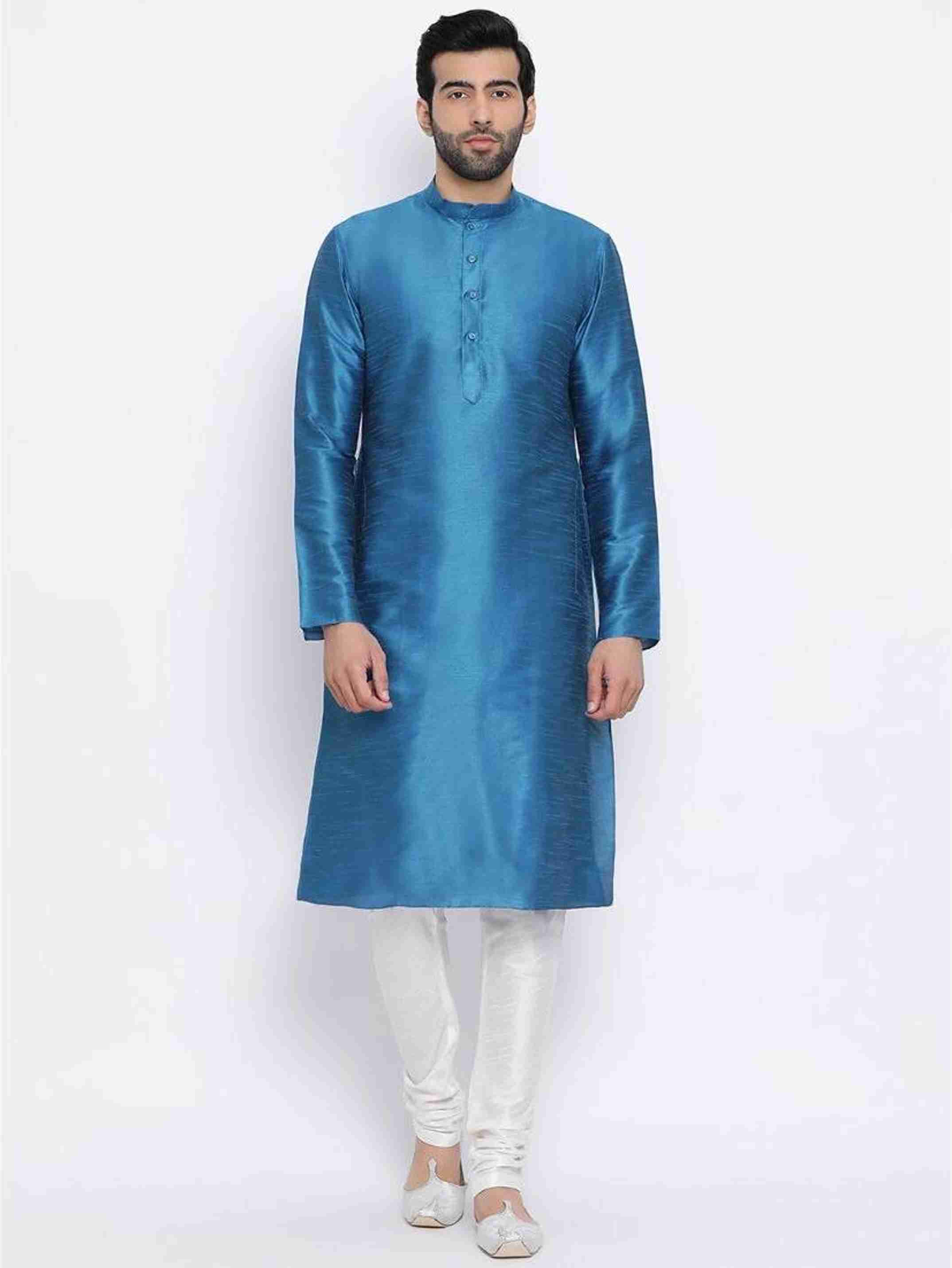 Men Solid Dupion Silk Straight Kurta (Blue)
