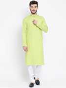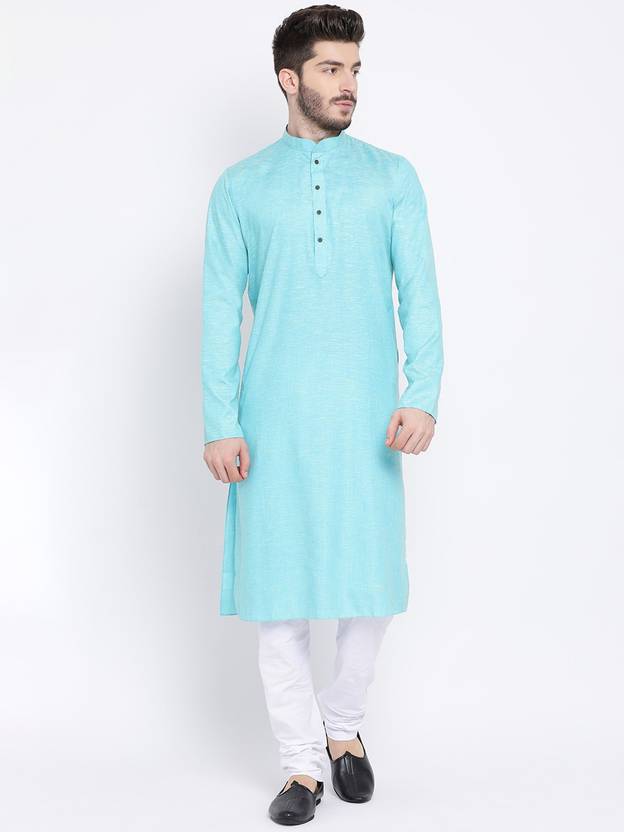 Namaskar Men Solid Pure Cotton Straight Kurta (Blue)