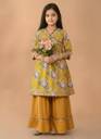 girls kurti sharara set, kids ethnic wear, mustard yellow kurti, floral cotton kurti set, festive wear dress for girls, traditional indian dress kids, girls sharara suit, party wear kurti set girls, cotton ethnic outfit kids, wedding ethnic wear girls
