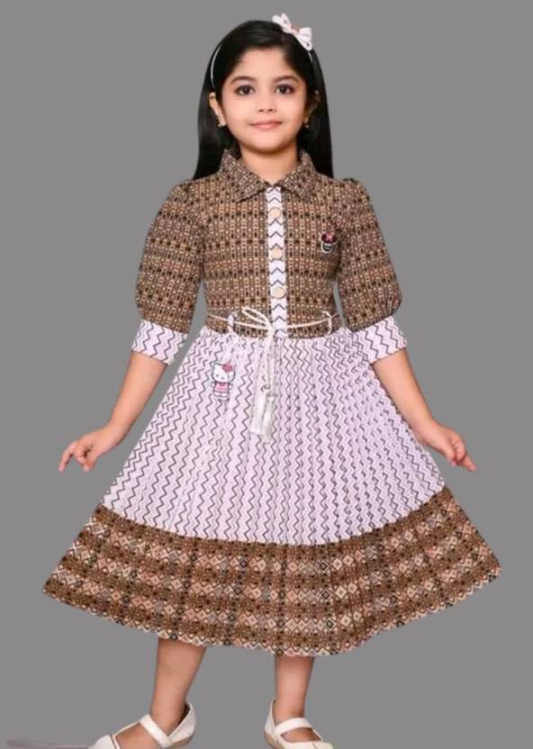 Girls Calf Length Casual Dress (Multicolor, 3/4 Sleeve)