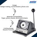 Ideal for trimming photo paper, laminated sheets, and badge artwork, this cutter is great for preparing inserts for button badges, stickers, and ID cards. Its compact and portable design makes it a practical addition to craft rooms, event merchandising stations, and school workshops.