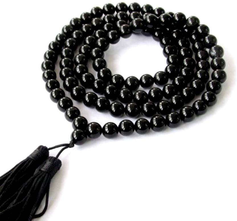 Pooja Mala/Kale Hakik ki Mala for jaap and Puja 108 Beads (Black, 6 mm)