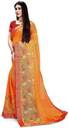 Featuring an intricate embellishment, this women's saree showcases a beautifully designed pattern that makes a lasting impression in any setting. The delicate detailing, achieved through careful craftsmanship, adds a touch of elegance and sophistication. And, the vibrant motifs enhance this saree's appeal, making it suitable for various casual occasions. Whether attending a relaxed gathering or a festive event, this eye-catching design ensures you make a stylish statement.