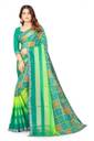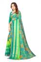 Printed Bollywood Chiffon, Brasso Saree (Light Blue, Green)