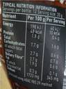 • Energy- 198KJ, Fat 1.9g, Saturated Fat-0.3g, Trans-Fat-0g, Carbohydrates-7.7g, sugars-2.7g, Protein-1.8g, Sodium-1723mg