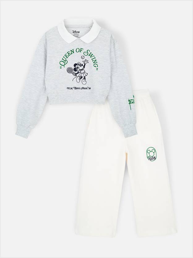 Soft French Terry Crop Sweatshirt paired with Bell Bottom Joggers, Made from 100% Cotton, Official Disney Merchandise, Oversized Fit- Polo Collar, Girls Co-Ords set for ages 12 months-14 Years