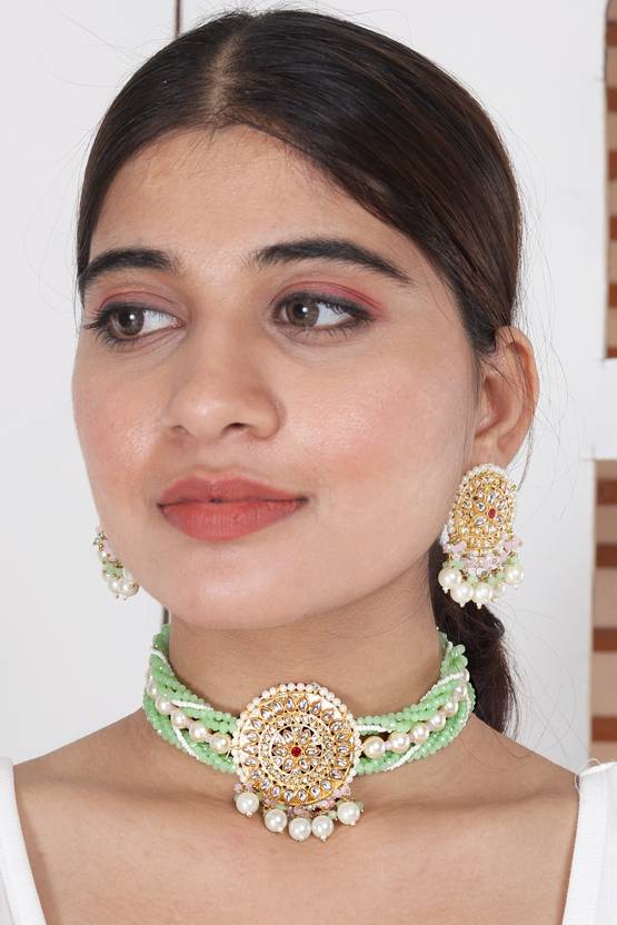 A jewellery set typically consists of matching pieces of jewellery that are designed to be worn together. It often includes a necklace, earrings, a bracelet, and sometimes a ring. The specific design and materials used can vary greatly, ranging from simple and understated to elaborate and ornate. Jewellery sets can be made from various materials such as precious metals like gold or silver, and adorned with gemstones, diamonds, pearls, or other decorative elements. The style and theme of a jewellery set can be tailored to suit different occasions, such as formal events, weddings, or everyday wear. Ultimately, the description of a jewellery set will depend on its individual design and characteristics.