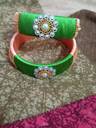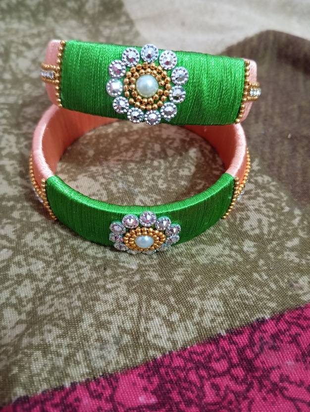 Traditional Gold-Toned Silk Thread Bangles with Crystal Embellishments, Set of 2