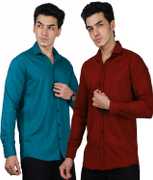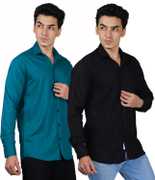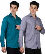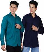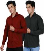 Men Regular Fit Solid Spread Collar Casual Shirt (Pack of 2)