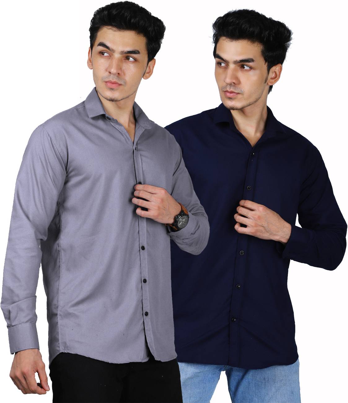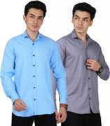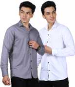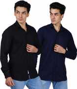 Men Regular Fit Solid Spread Collar Casual Shirt (Pack of 2)