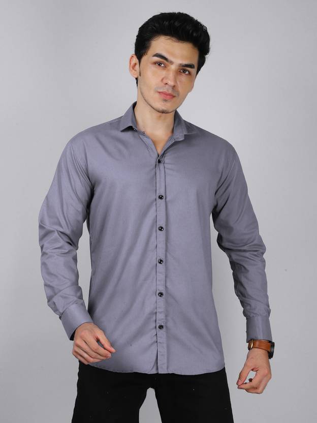 NARGHEISH NICE Men Solid Casual Grey Shirt